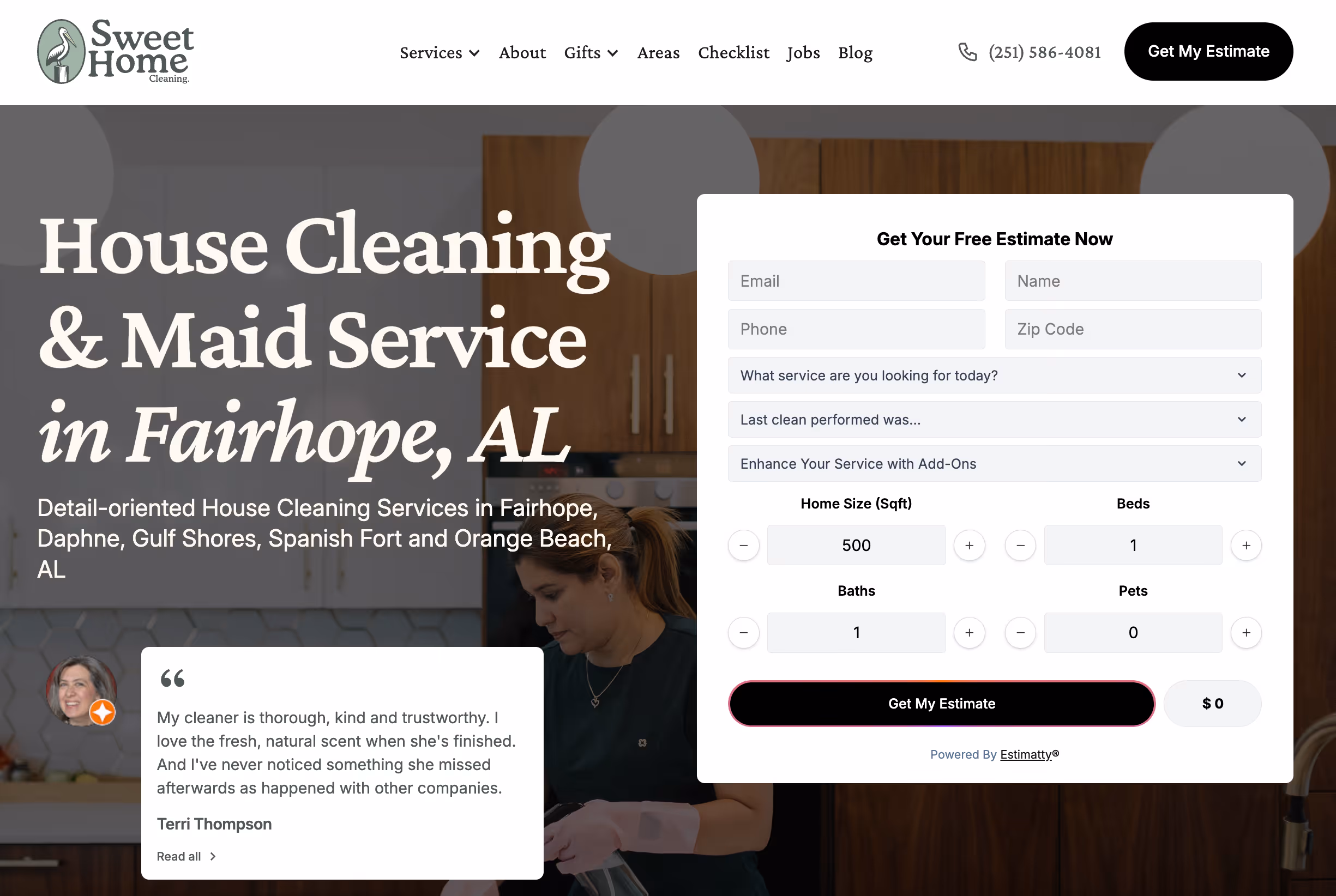 SweetHome Cleaning in Alabama implements instant estimates on their home page, see image below: