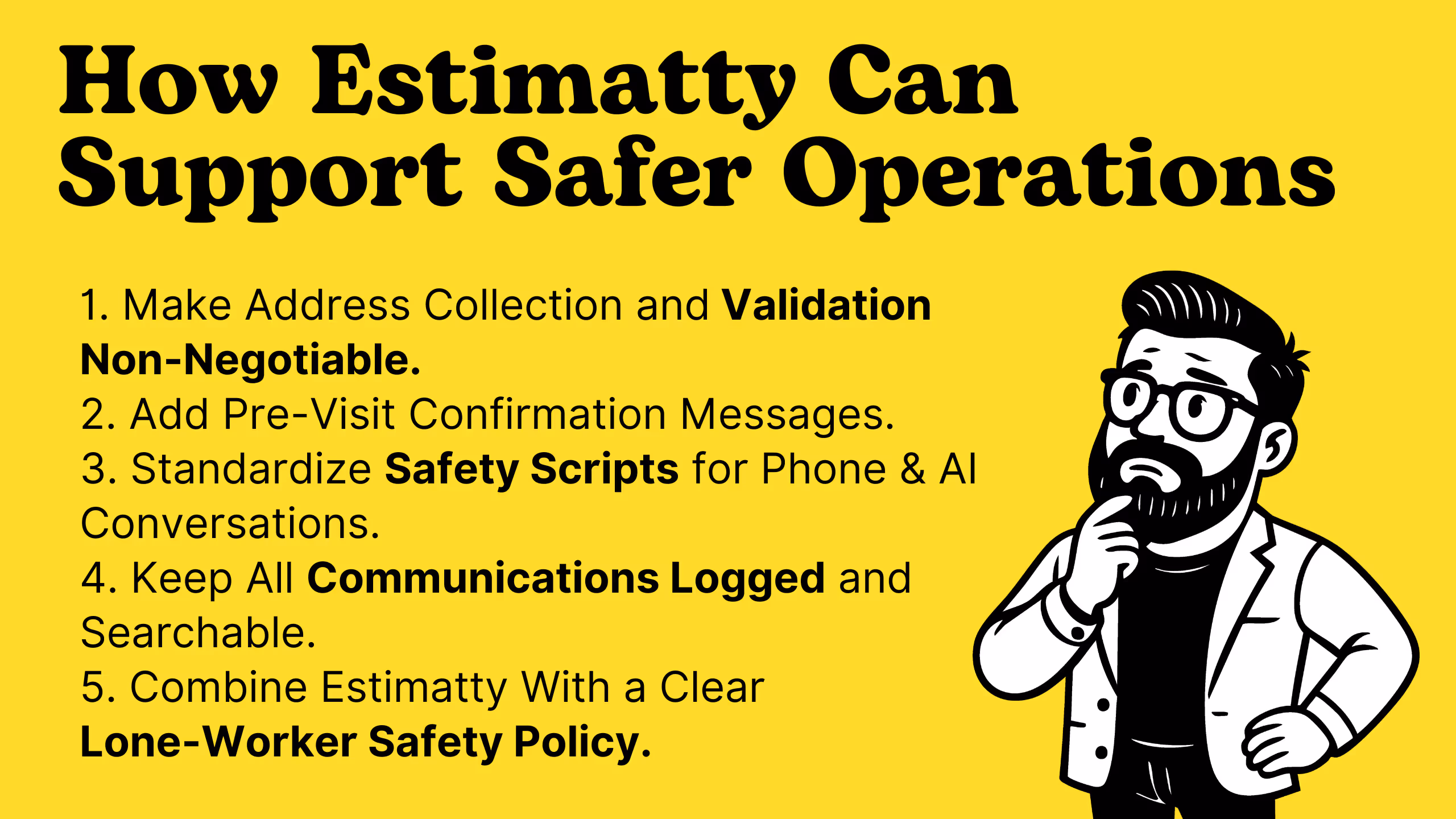 Show how tools like Estimatty (our AI sales and intake assistant for cleaning companies) can support safer operations, especially around address verification, client communication, and digital records.