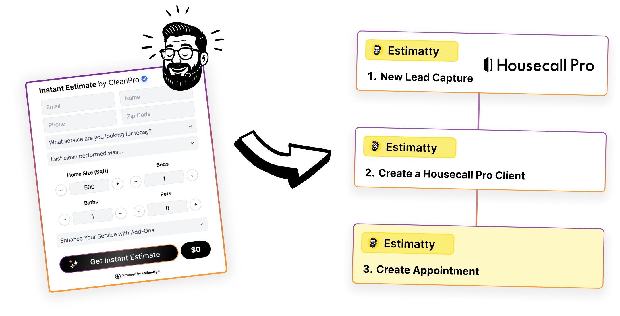 Streamline your estimating → scheduling flow. Let Estimatty capture the lead + price instantly… then send the details to Housecall Pro (via Zapier).